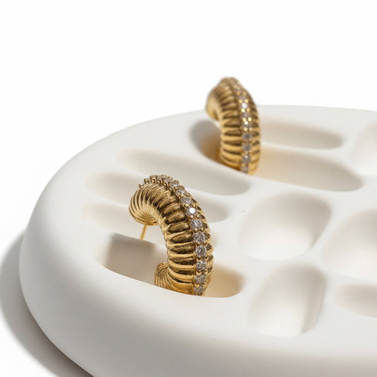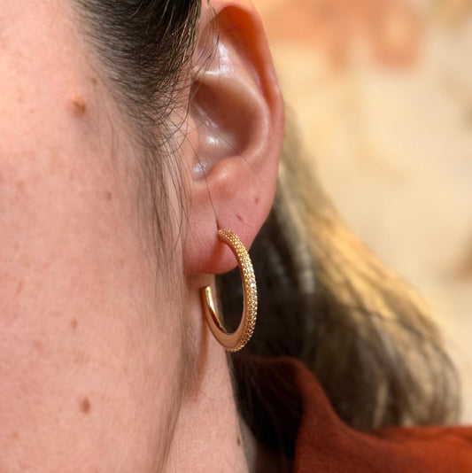 EARRING HOOPS TEXTURE WITH CUBIC ZIRCONIA LINE