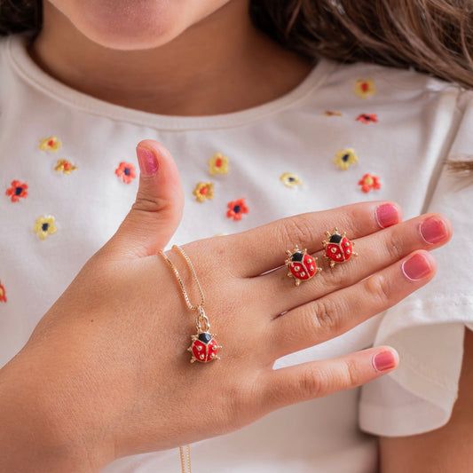 NECKLACE+EARRINGS LADY BUG JEWELRY SET FOR KIDS