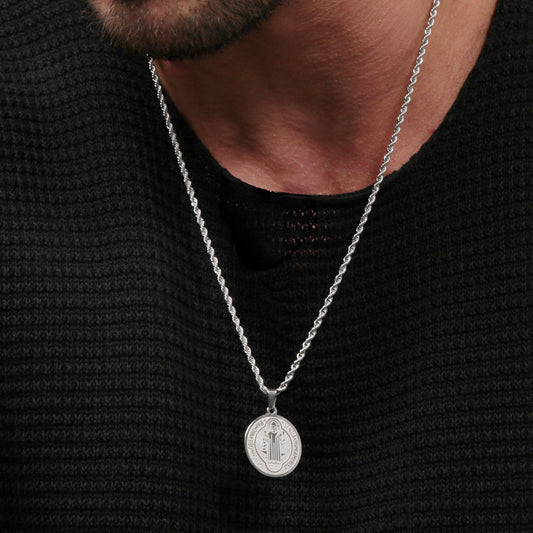 NECKLACE TWISTED CHAIN STAINLEES STEEL ST BENEDICT PENDANT FOR MEN