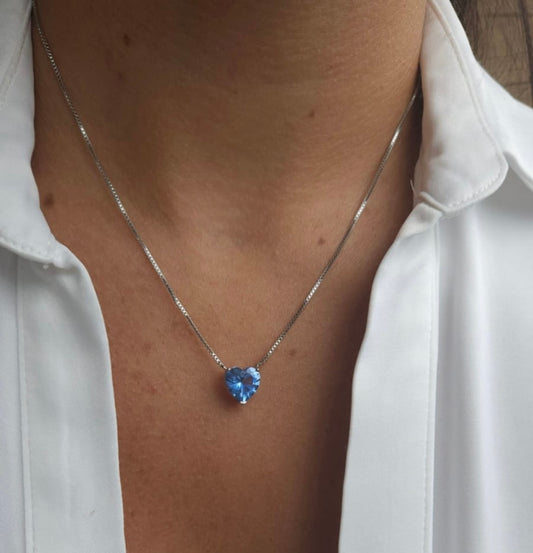 NECKLACE BLUE HEART CUBIC ZIRCON