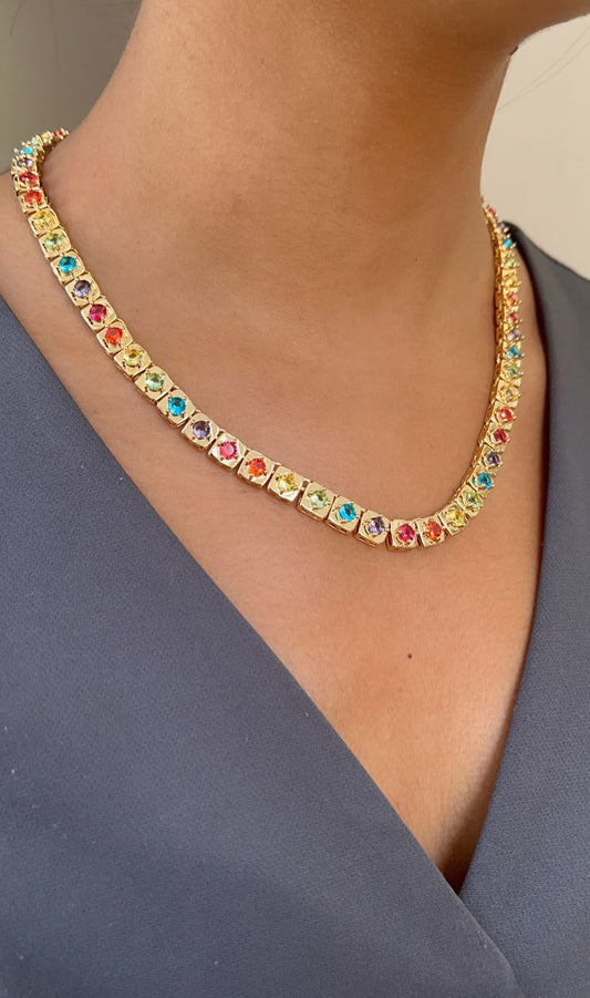 NECKLACE SQUARE CUBIC ZIRCON COLORS DELUXE