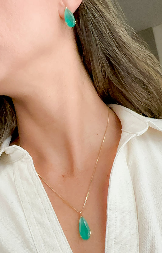 EARRING + NECKLACE EMERALD AND CUBIC ZIRCON