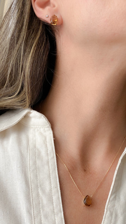 EARRING + NECKLACE SET COFFEE BROWN TEAR DROP CRYSTAL
