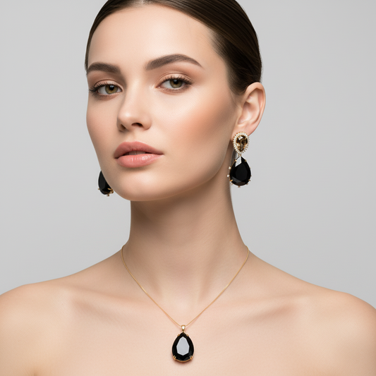 NECKLACE + EARRINGS SET LUXURY ONIX BLACK AND BROWN CRYSTALS