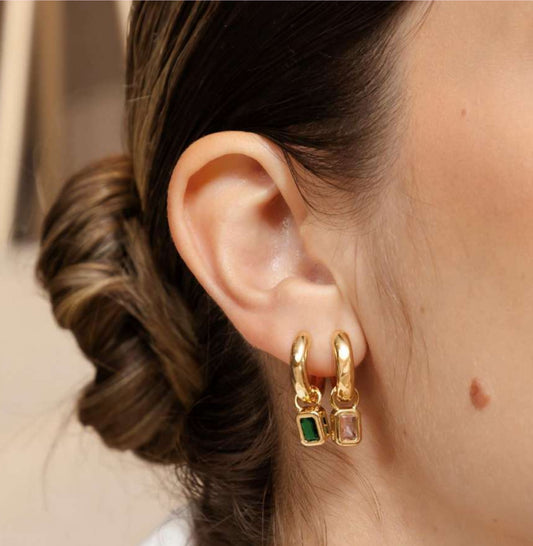 EARRING HOOPS WITH 3 CUBIC ZIRCON