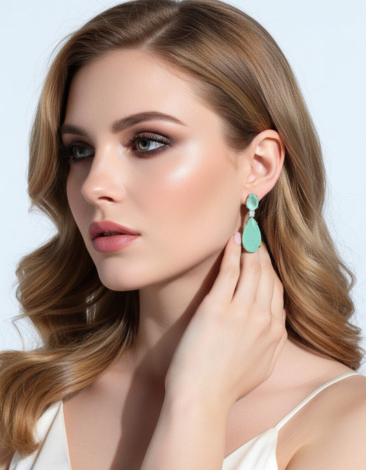 EARRING GREEN AQUA FUSION TEAR DROPS