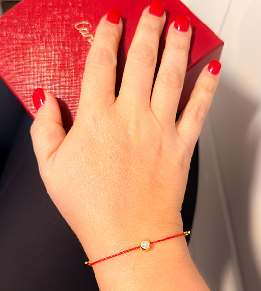 BRACELET RED STRING ADJUSTABLE MOISSANITE