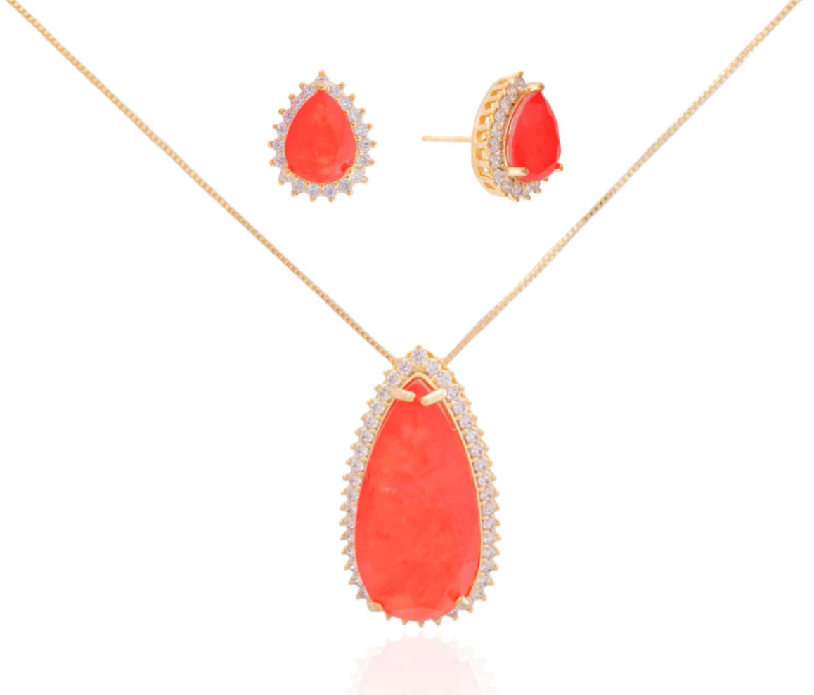 EARRING+NECKLACE SET TEARDROP CRYSTALS ORANGE FUSION