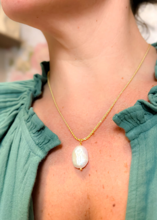 COLAR CORRENTE TRANÇADA E PÉROLA BARROCA