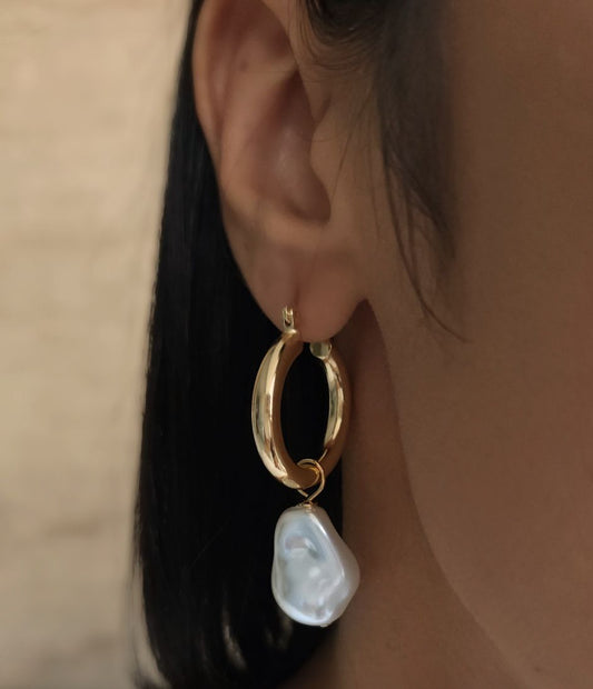 BRINCO TUBO ARGOLA GRANDE PÉROLA BARROCA