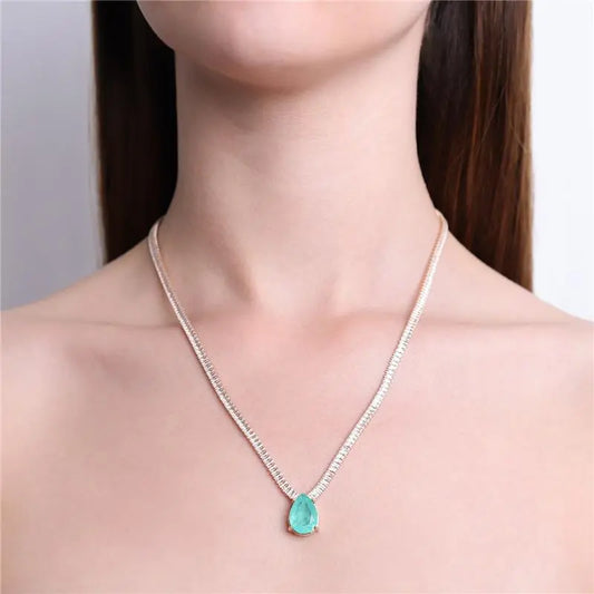 COLAR RIVIERA BAGUETTE CZ COM LÁGRIMA TURMALINE FUSION