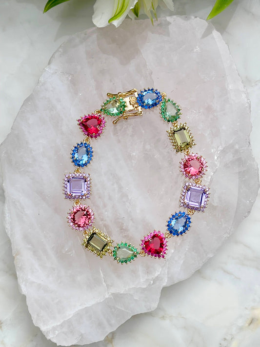 PULSEIRA GEMA CRISTAIS DE CORES GEOMÉTRICAS