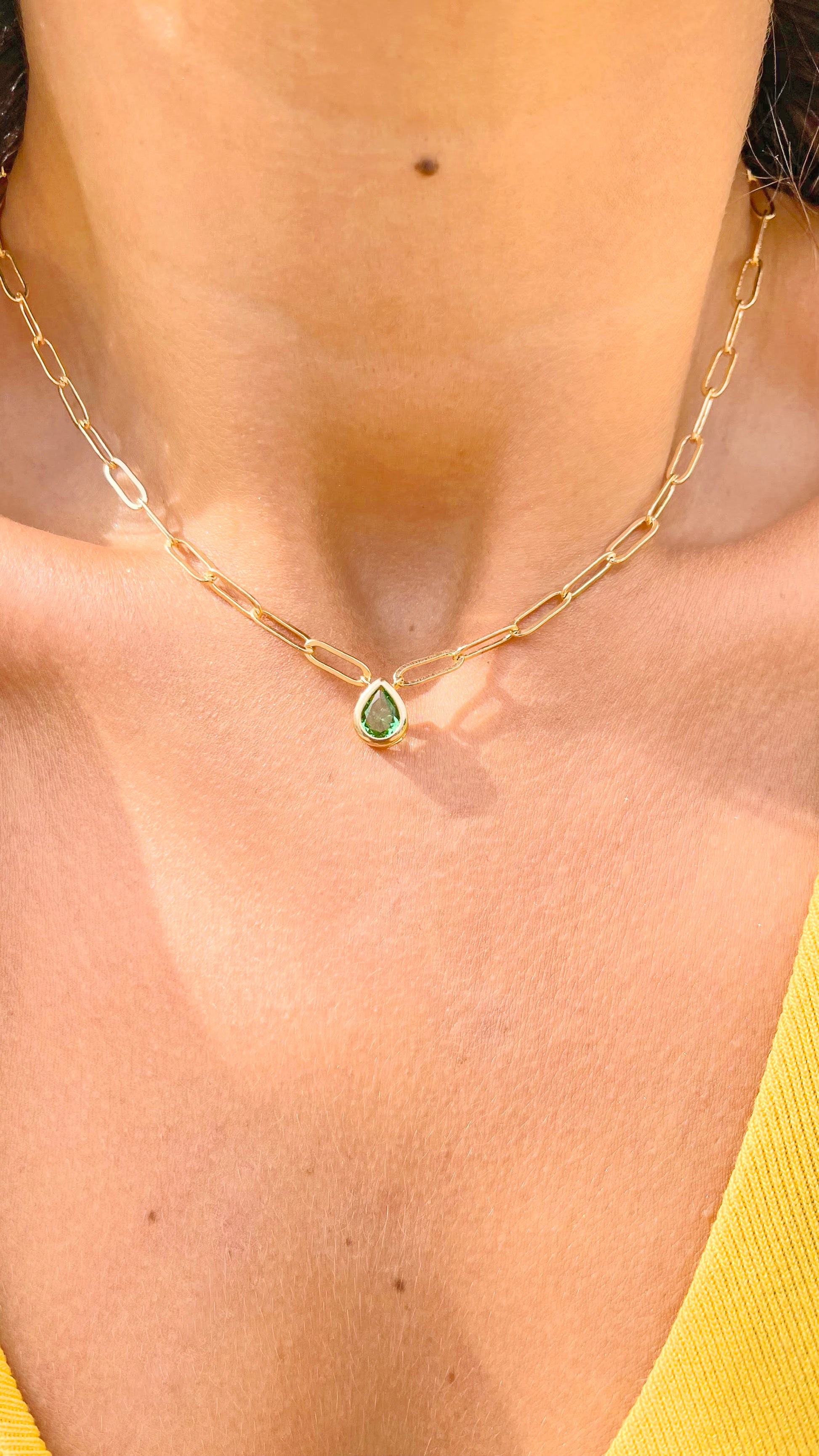 COLAR CORRENTE + LÁGRIMA DE CRISTAL VERDE PERIDOTO