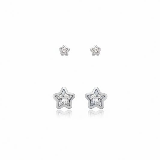 EARRINGS DUO STARS CUBIC ZIRCONIA