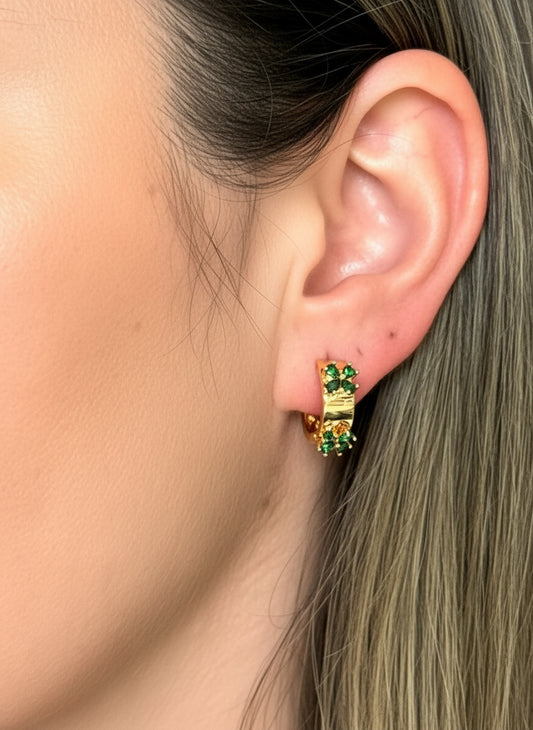 EARRING HOOPS EMERALD GREEN CLOVER CRYSTALS