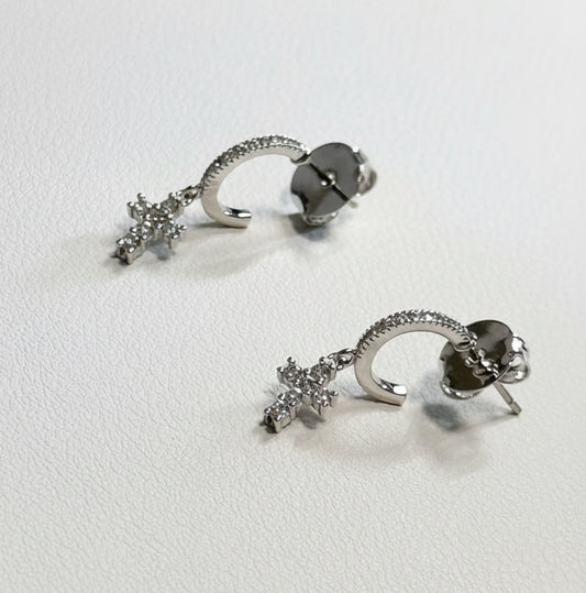 EARRING HOOPS CROSS STUDDED CUBIC ZIRCONIA