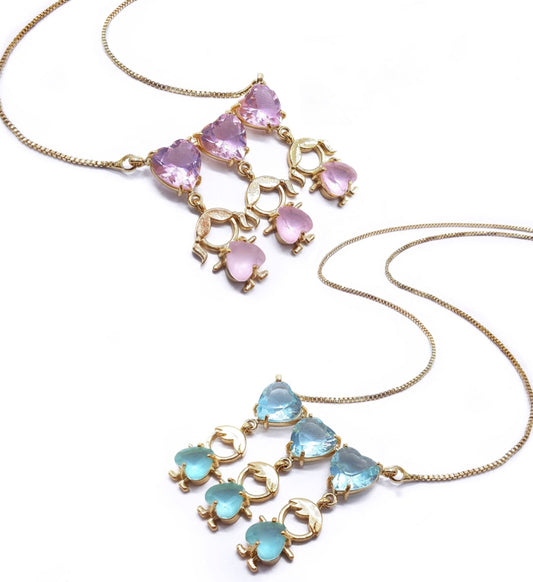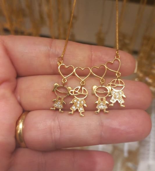 COLAR FAMILY LOVE 4 CRIANÇAS COM CRISTAIS