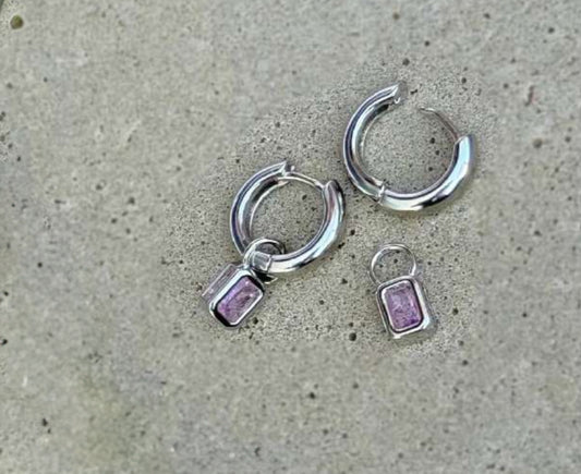 EARRING HOOPS SQUARE CUBIC ZIRCONIA
