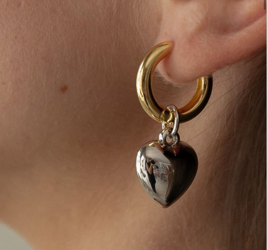 BRINCO DE ARGOLA CORAÇÃO DUPLO BANHADO