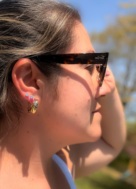 BRINCOS DE ARGOLA CRISTAL TOPÁZIO MARROM E MICROZIRCÕES CÚBICAS