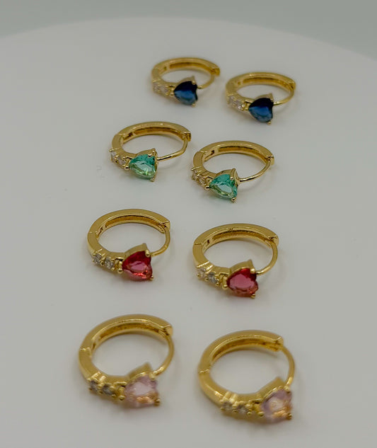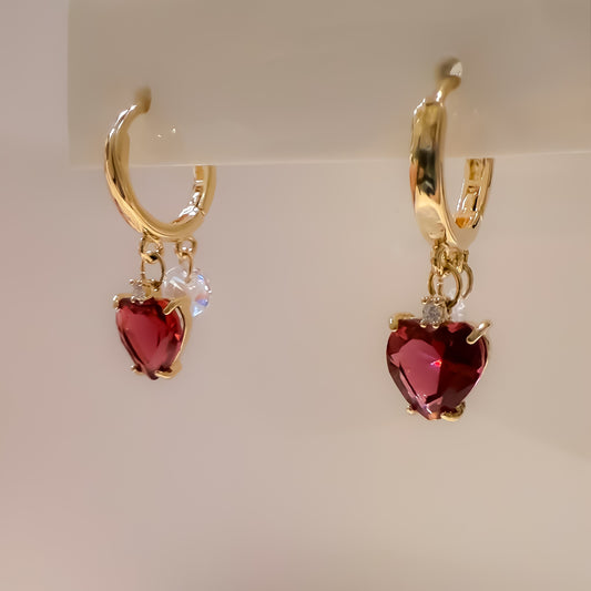 BRINCO DE ARGOLA COR RUBI CRISTAL CORAÇÃO + ZIRCÃO CÚBICA