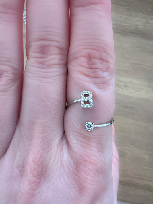 ANEL INICIAL PRATA 925 CRISTAIS AJUSTÁVEL