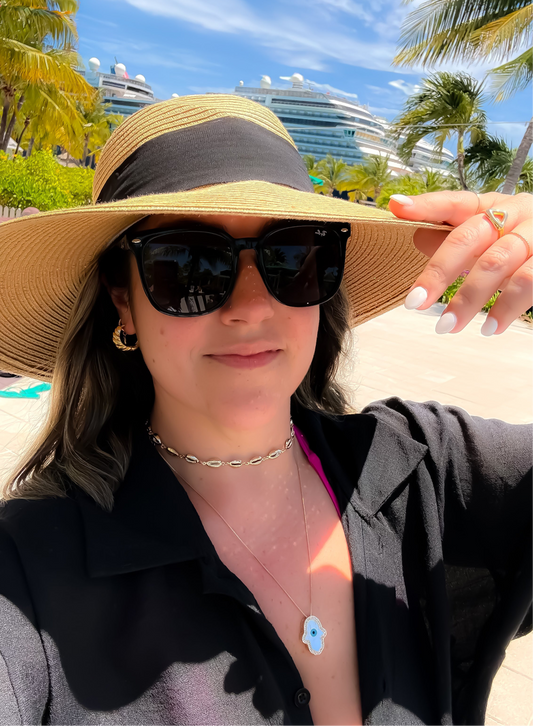 COLAR TALISMÃ - Olho grego, mão de figo, cristal vermelho e trevo
